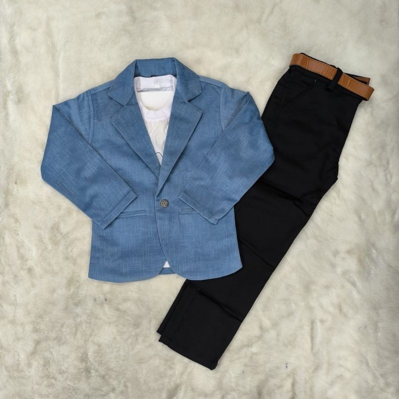 Blezer set-3pis set(Blezer, sleeveless t-shirt pant) Blue