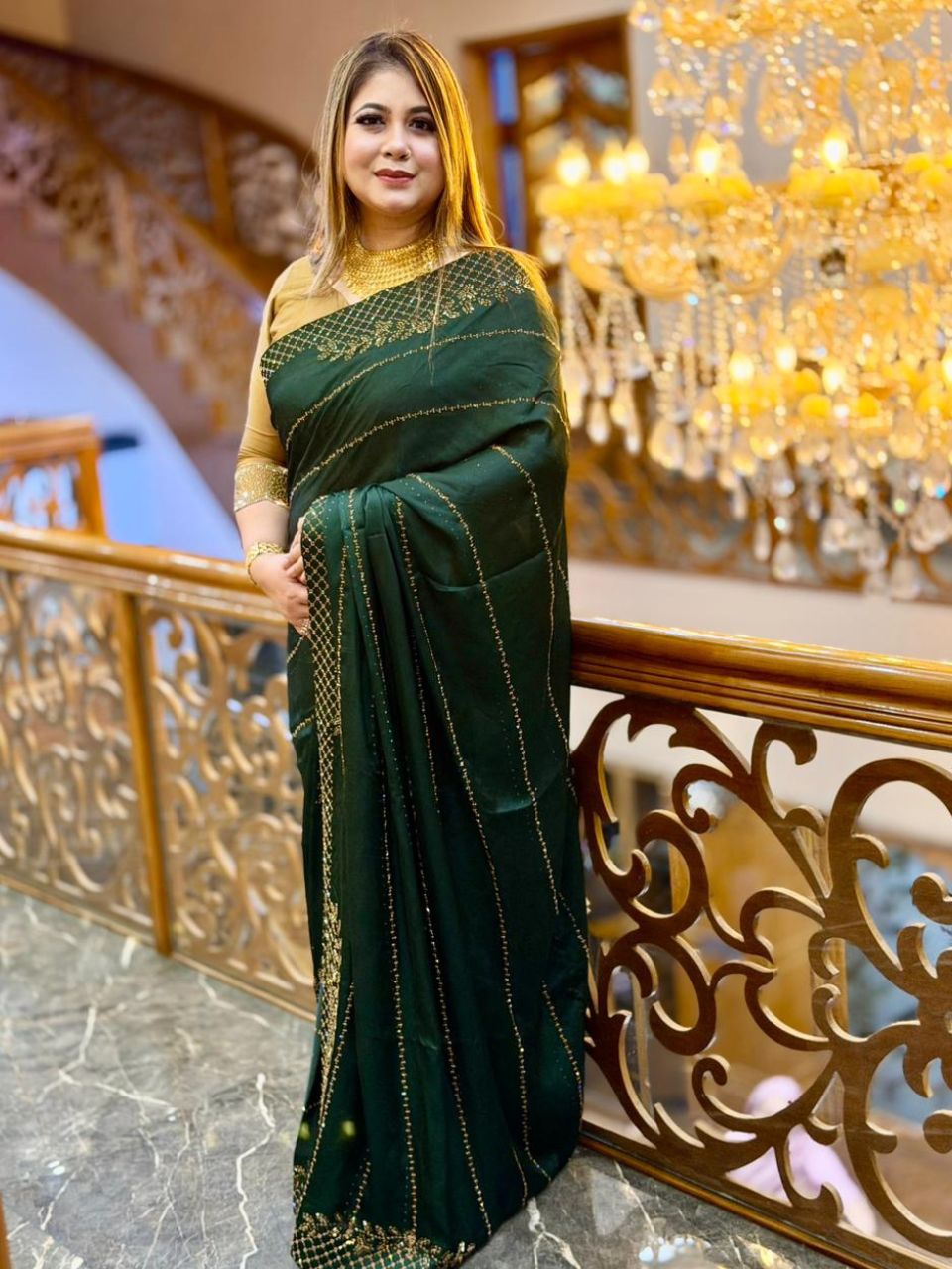 Dark Green Silk Fabric Saree with Zarkan Work
