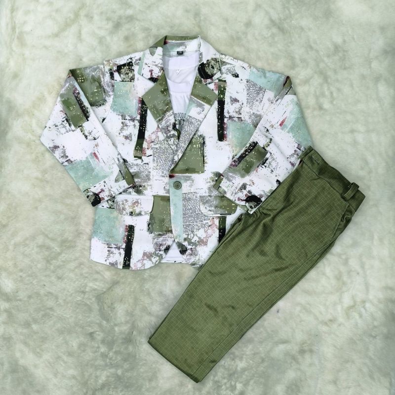 Blezer set-3pis set( Blezer, Full pant, sleeveless t-shirt) Peach