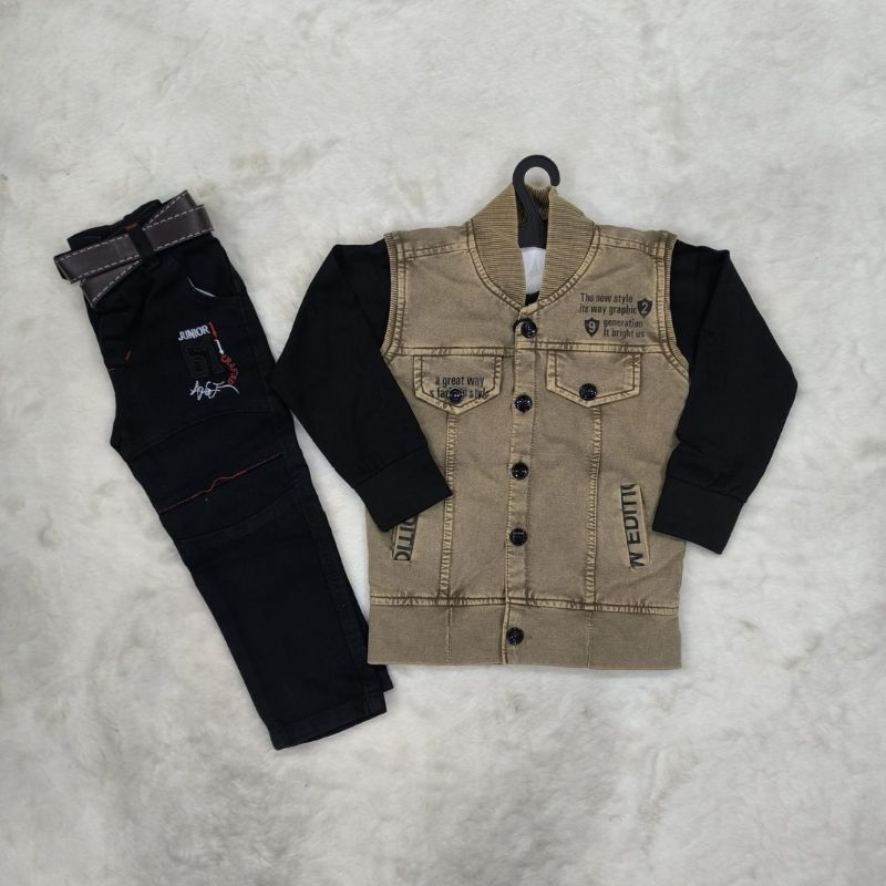 Coty full Sleeves set-3pis set ( Full sleeves t-shirt, Half sleeves koti, Full pant) Khaki