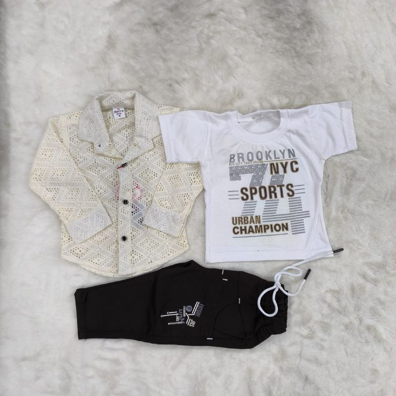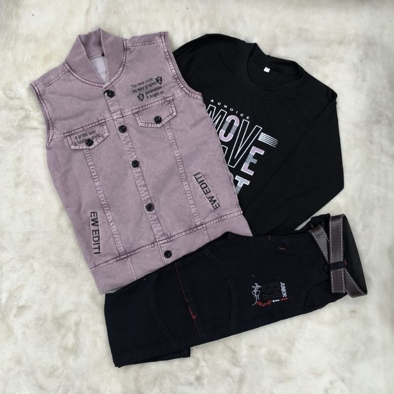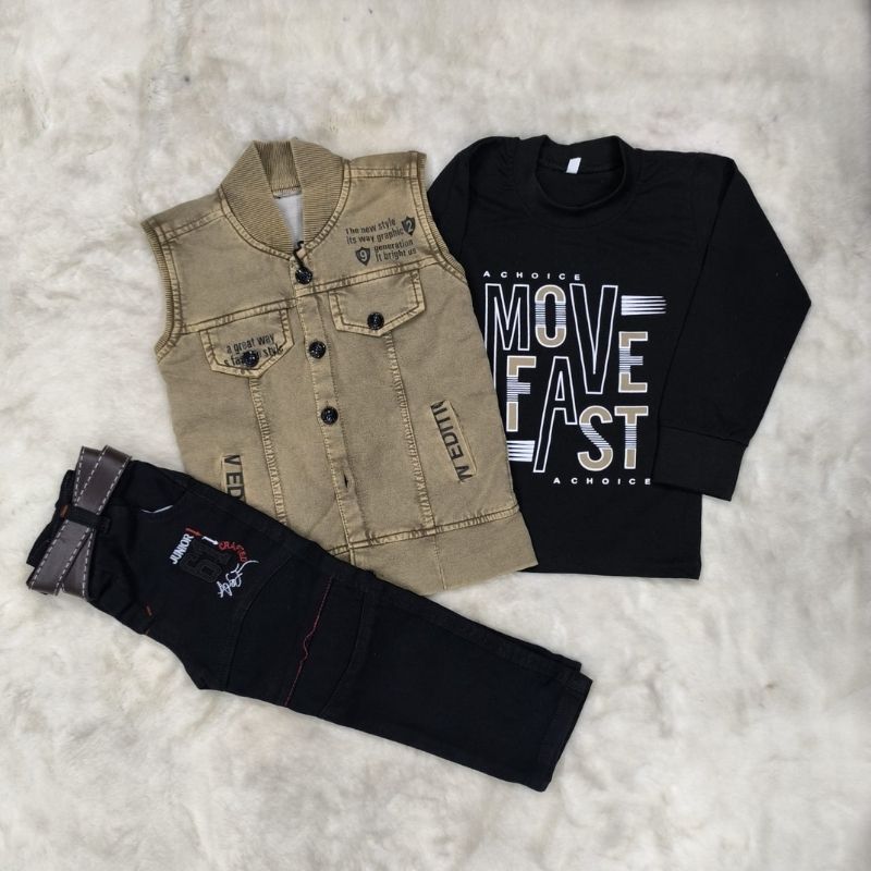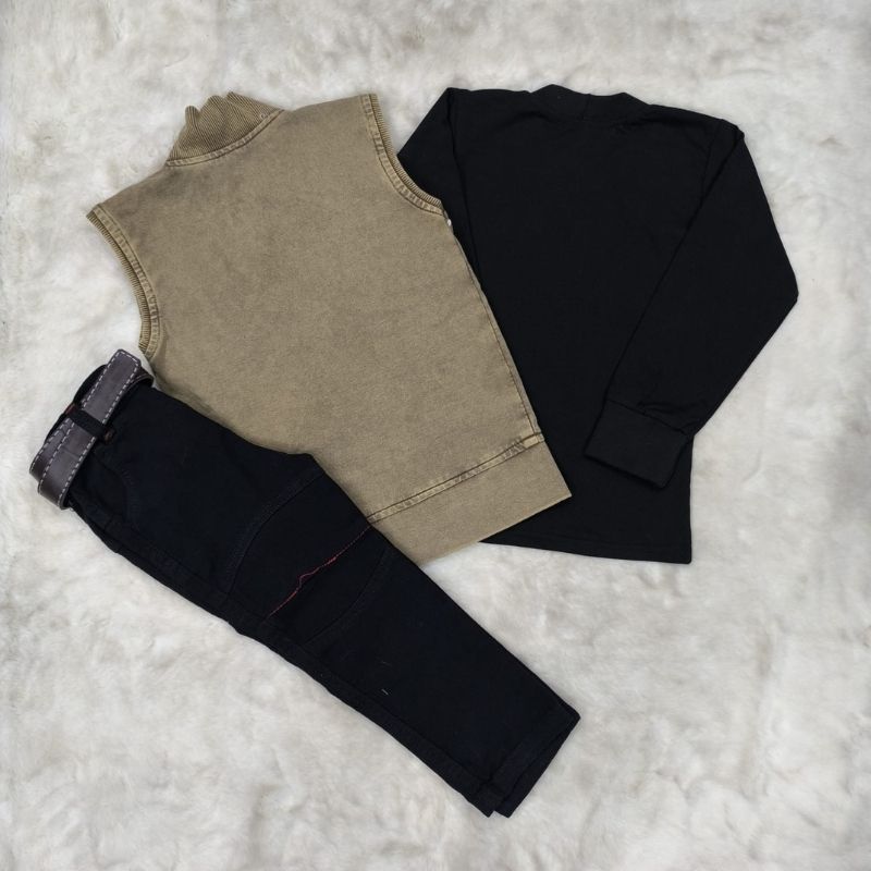 Coty full Sleeves set-3pis set ( Full sleeves t-shirt, Half sleeves koti, Full pant) Khaki
