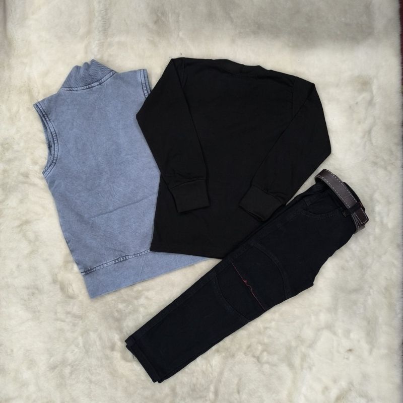 Coty full Sleeves set-3pis set ( Full sleeves t-shirt, Half sleeves koti, Full pant) Blue