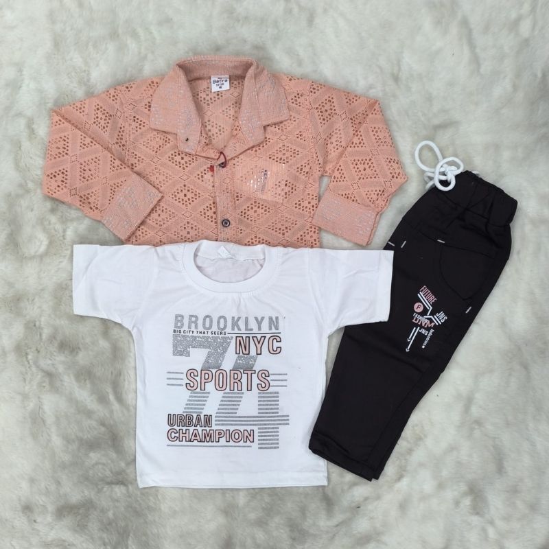 Coty full Sleeves set-3pis set ( Full sleeves t-shirt, Half sleeves koti, Full pant)Peach
