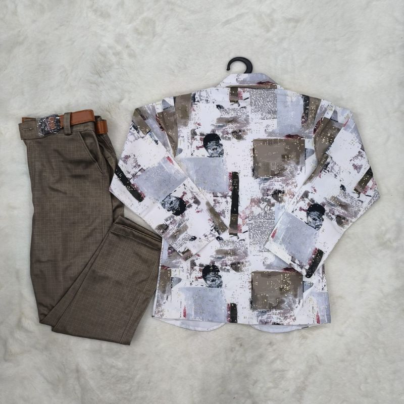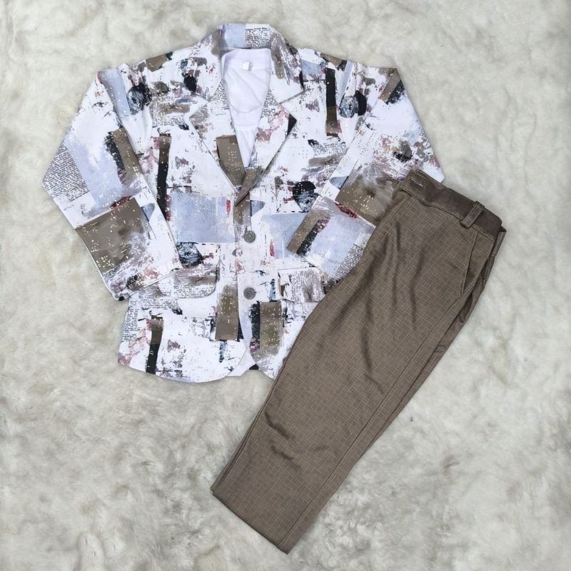 Blezer set-3pis set( Blezer, Full pant, sleeveless t-shirt) Peach